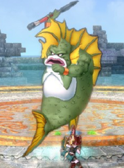 その姿は青緑色のひげと長い髪、水色の腕、魚の尾を持った姿をしているという。