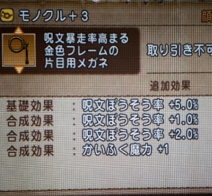 もうモノクルは+3になっていて暴走8%になってるし
